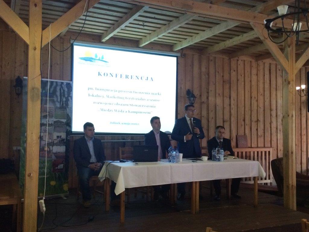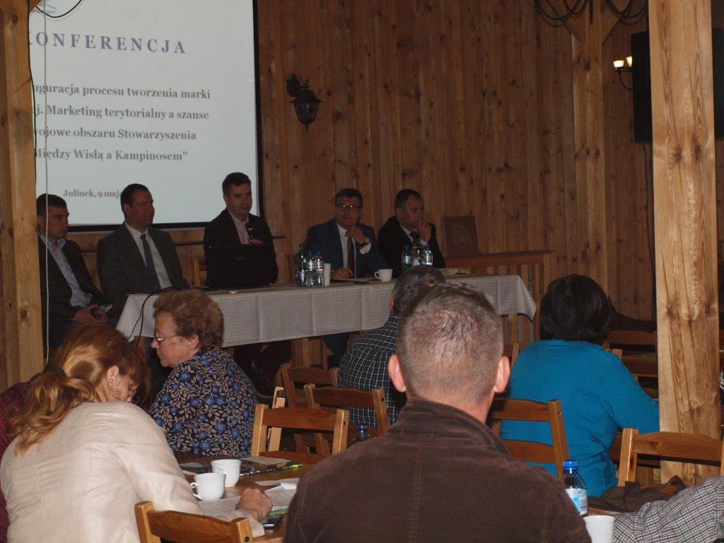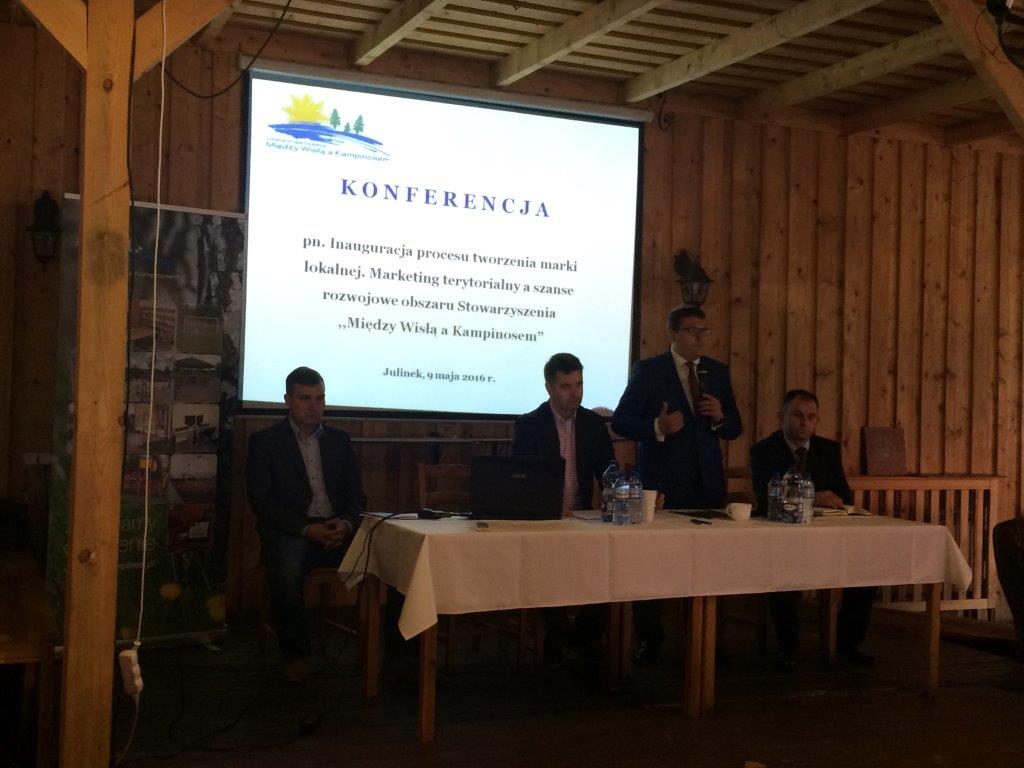 W dniu 9 maja br. w Gościńcu Julinek odbyła się konferencja pn. ,,Inauguracja procesu tworzenia marki lokalnej. Marketing terytorialny a szanse rozwojowe obszaru Stowarzyszenia ’’Między Wisłą a Kampinosem’’. Konferencję otworzył i przywitał uczestników Paweł Białecki - Prezes Zarządu Stowarzyszenia ,,Między Wisłą a Kampinosem’’. Następnie Marek Romaniec - Prezes Fundacji ,,Naszyjnik Północny’’, Dyrektor Biura Stowarzyszenia Lokalna Grupa Działania ,,Krajna Złotowska’’ podzielił się doświadczeniem w zakresie tworzenia i funkcjonowania marki lokalnej na przykładzie swojej Fundacji. Kolejne zagadnienie przedstawił Krzysztof Martyniak, badacz społeczności lokalnych, Instytut Socjologii Uniwersytetu Warszawskiego. Zaprezentował markę lokalną jako narzędzie kreowania rozwoju lokalnego. Następnie Marcin Jóźko, ekspert ds. partycypacji i rozwoju lokalnego, Lokalne Badania Społeczne omówił społeczno-ekonomiczną diagnozę obszaru Stowarzyszenia ,,Między Wisłą a Kampinosem’’ w tym bilans otwarcia i potencjał rozwojowy. Ostatnim panelem spotkania było wystąpienie Pawła Zajca – Dyrektora Biura Stowarzyszenia ,,Między Wisłą a Kampinosem’’. Omówił on możliwości finansowania działań związanych z rozwojem i promocją przedsiębiorczości w kontekście procesu budowy marki lokalnej. Na zakończenie uczestnicy wzięli udział w pokazie kulinarnym przeprowadzonym przez kucharzy Tomasza Binio i Dariusza Bolanowskiego z wykorzystaniem produktów lokalnych.